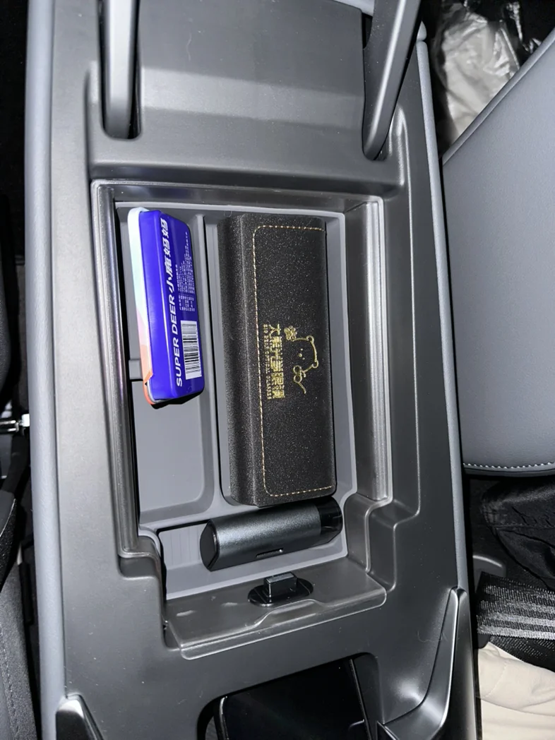 m03官方商城的扶手箱储物盒分区真的很不错,可以放一些常用的眼镜,牙线,纸巾等,还可以放一个应急破窗锤,保证安全