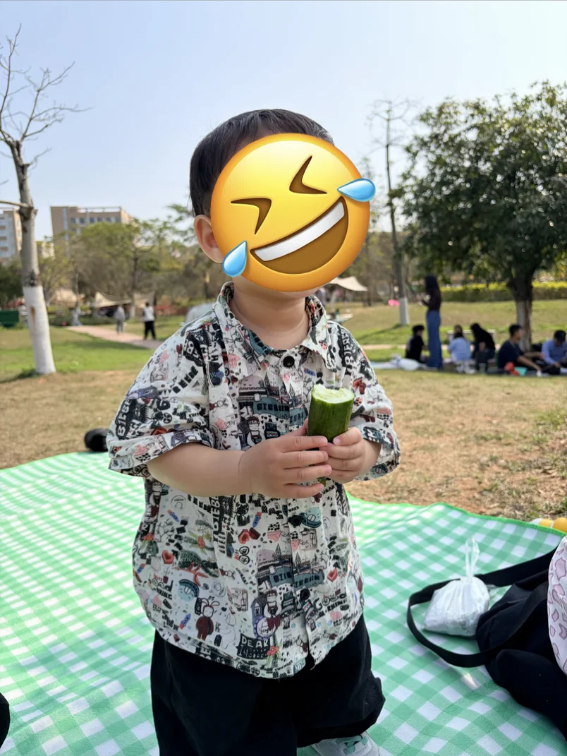 到了公园,草坪上已经有不少人在搭帐篷。我们找了一处树荫,铺开野餐垫,他跑去追蝴蝶,我靠在旁边看着他。风很轻,阳光正好,那种安静又踏实的感觉,很久没有过了。
