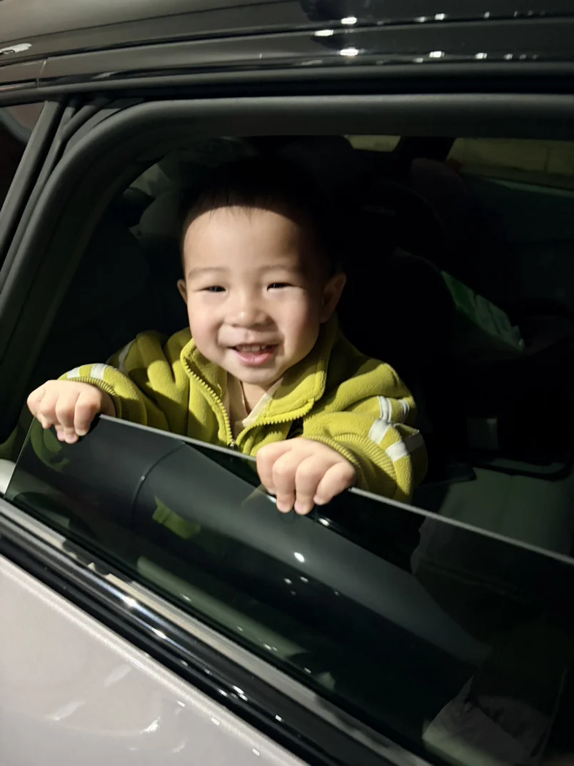 沿途的梧桐刚抽了新芽,嫩绿嫩绿的,阳光从树缝里漏下来,打在车顶上。打开全景天幕的遮阳帘,整辆车都浸在暖融融的光里。儿子趴着车窗往外看,一会儿喊“有风筝”,一会儿叫“好多花”,兴奋得像只小麻雀。