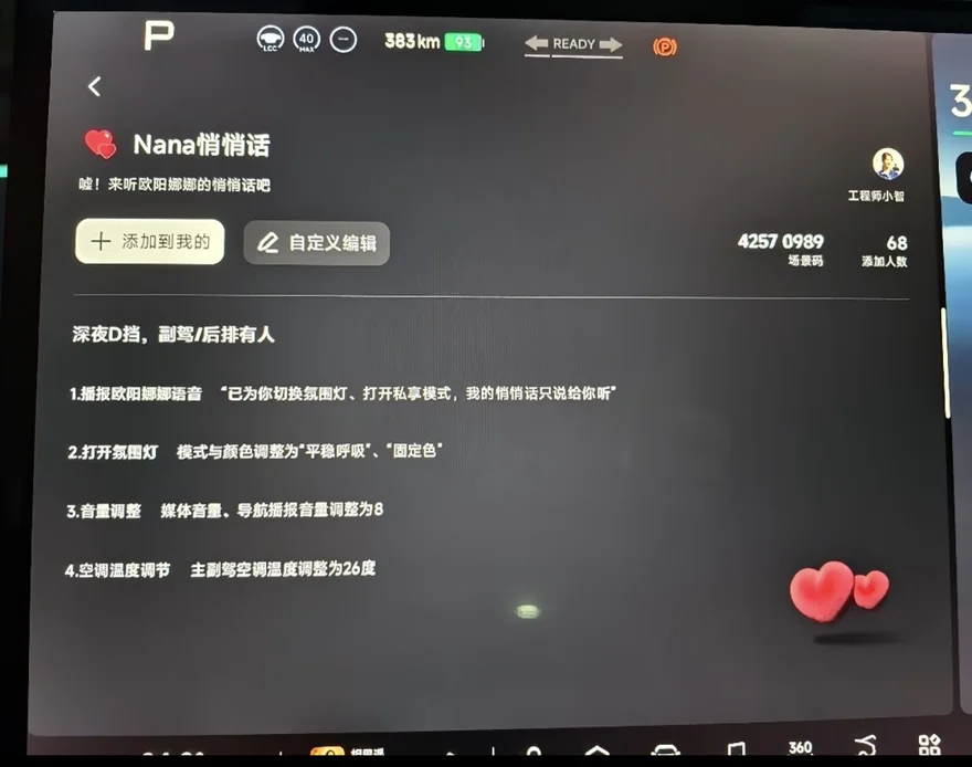 #小鹏汽车 、#小鹏MONA、#欧阳娜娜坐上我的小鹏MONA副驾#2026款小鹏MONA03携手欧阳娜娜打造的专属语音包,真的把车内氛围感与暖心陪伴拉满✨。清甜温柔的嗓音治愈又治愈,上车就有软糯亲切的迎宾问候,通勤路上暖心打气,小憩时刻温柔低语,座椅按摩、氛围律动、安全提醒、哨兵守护全场景贴心适配。细腻自然的语调告别冰冷机械播报,每一句提示都满是温柔暖意,从日常出行到旅途闲暇,娜娜始终贴心随行。让冰冷智能座舱变成治愈小空间,浪漫又贴心,完美契合MONA灵动精致的气质,让每一段驾乘旅途都满是温柔与欢喜,幸福感一路相伴。