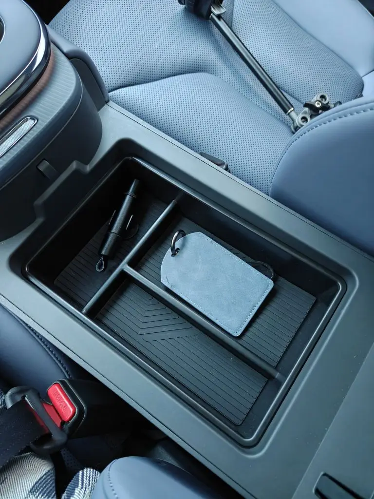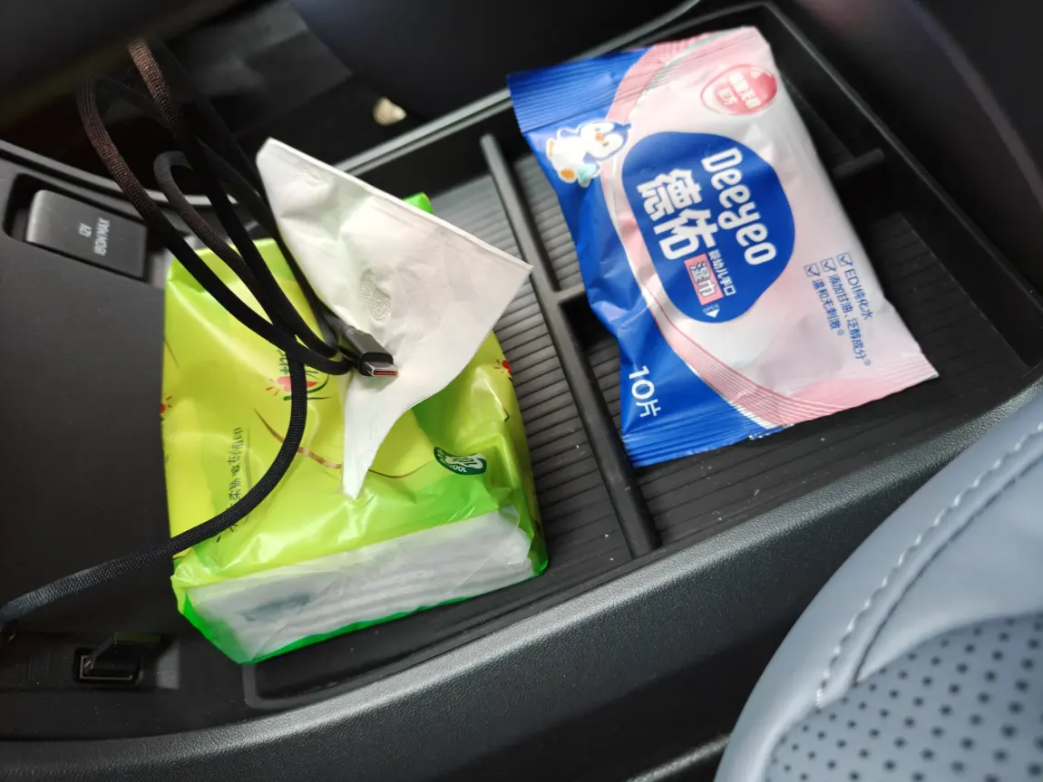 手套箱够深,着实有点浪费,加了一层,扶手下方格子垫子,区域分的很好