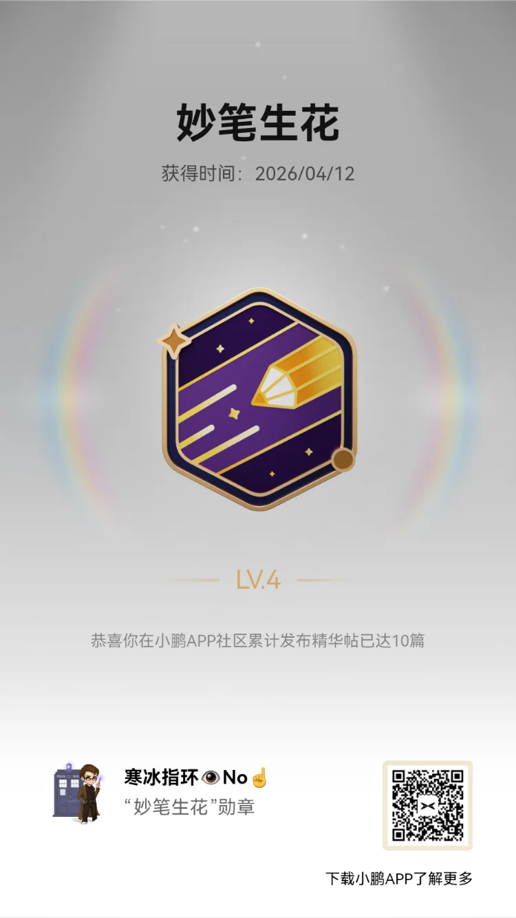 我发现自从春节开始积极参加社区活动,自己的文笔水平都直线上升了。这就是小鹏汽车以及小鹏APP带来的情绪价值吧。