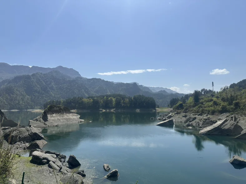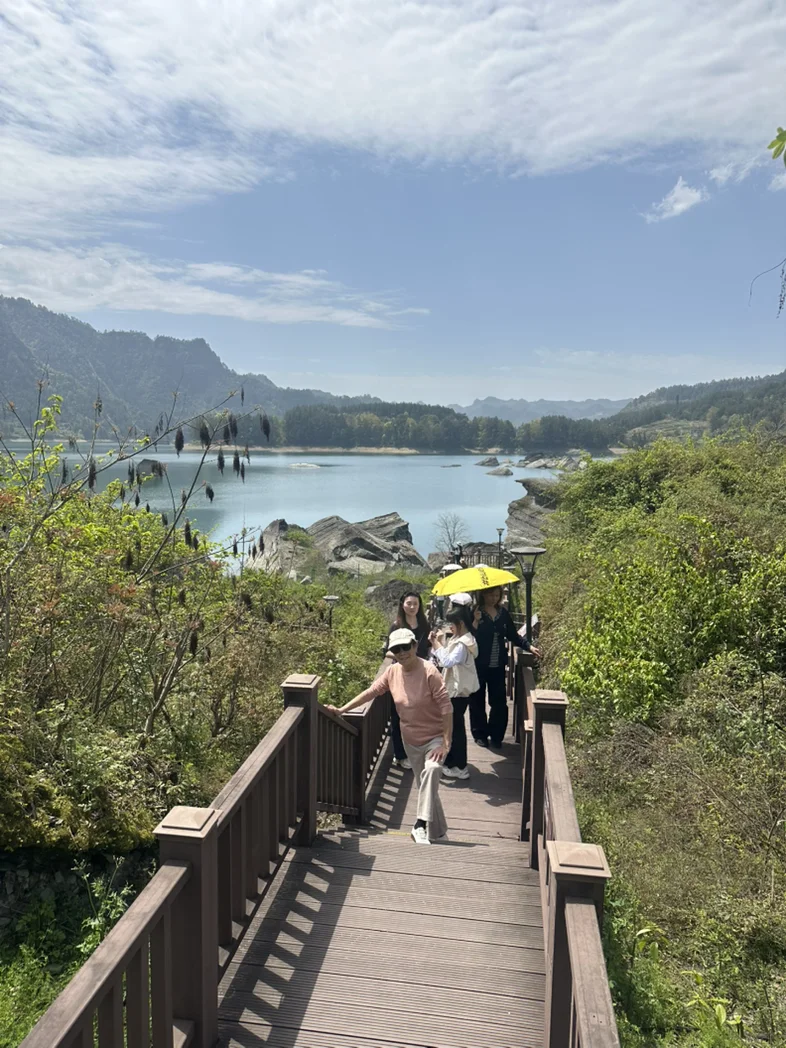 第二天的蒲花暗河,成了孩子眼中的“奇幻世界”。乘船进入溶洞,船灯只能照亮眼前一小片水域,两岸的钟乳石像藏在黑布后的精灵,在光影中忽明忽暗。孩子紧紧抓着我的胳膊,既害怕又兴奋,直到穿出洞口,头顶突然露出三座天生桥,阳光倾泻而下,他才欢呼起来:“爸爸,你看!老天爷搭的观景台!”出洞后,我们沿着栈道慢慢向下走,孩子捡了几块形状奇特的石头,说要带回家当“宝藏”。