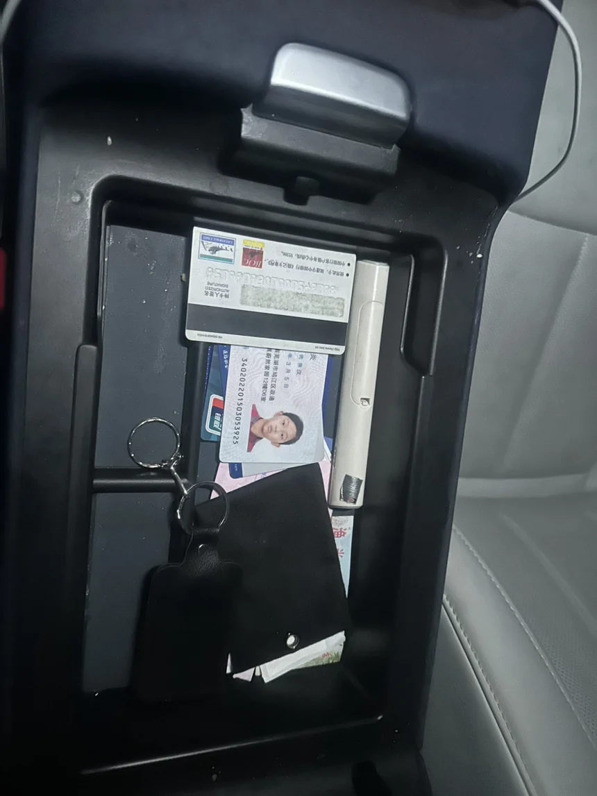 银行卡,身份证,指示笔等小物件,在扶手箱的小夹层里。