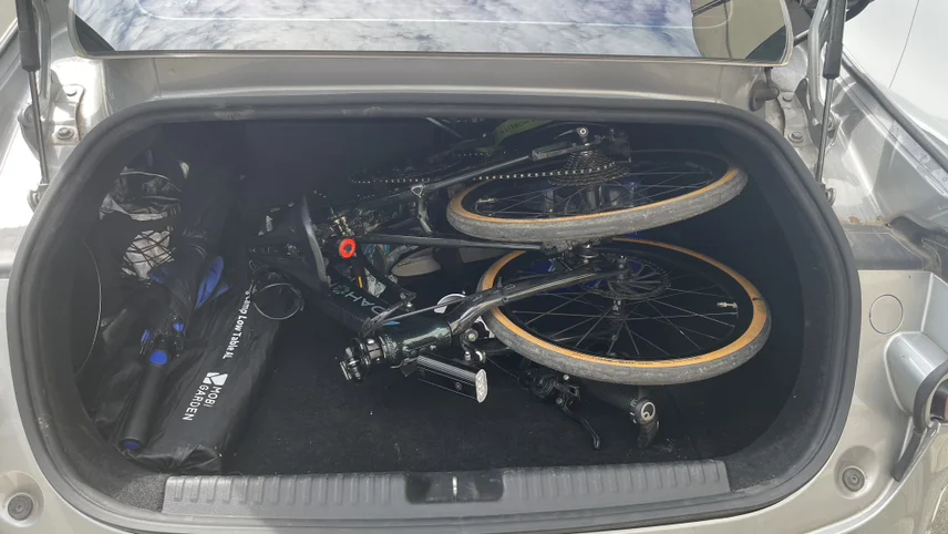 到了公园,我支起折叠桌泡茶喝咖啡,娃骑着自行车满场飞。朋友问:“你不跟着跑?”我指了指P7:“车帮我遛了,我负责享受。”这大概就是空间大的好处——不仅装得下自行车,还装得下老父亲的悠闲时光。