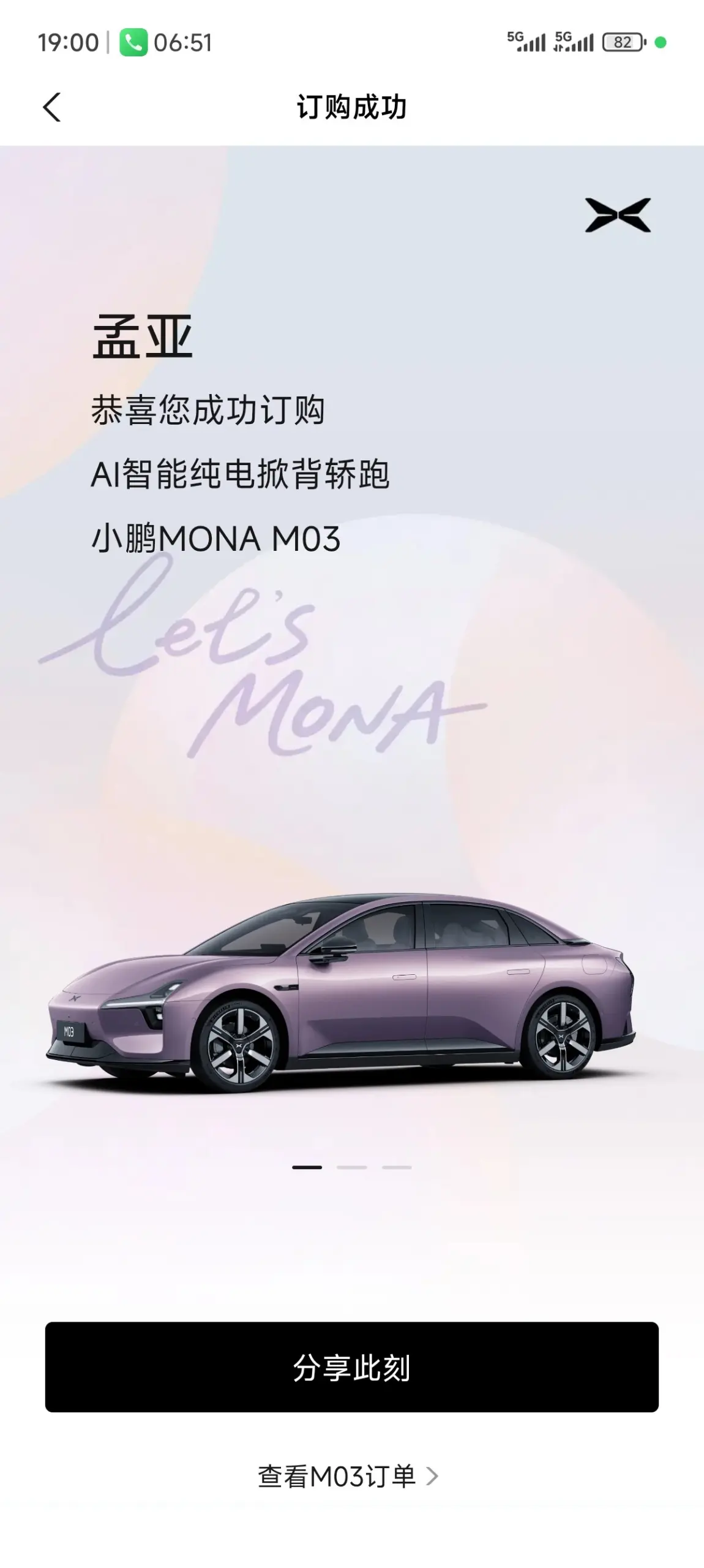 【下单理由】其实前面试驾了其他品牌的车辆,比如主打小巧的吉利星愿,主打舒适商务的奇瑞风云A9L,还有比亚迪海豹06。但是!我认为,智驾对我们新手司机来说很重要,小鹏今年的VLA2.0智驾确实让我很惊艳,而m03下半年也会推送蒸馏版本,所以很是让我心动。再者m03的外观造型很适合我们年轻人,很帅气,价格也很合适,也是全款可以拿下的。还有我们一个月有1000公里的高速需求,所以就加了钱买了610的超长续航。也是看了很多网络上的分析视频,同时也线下试驾过,综合以上我就选择了m03。