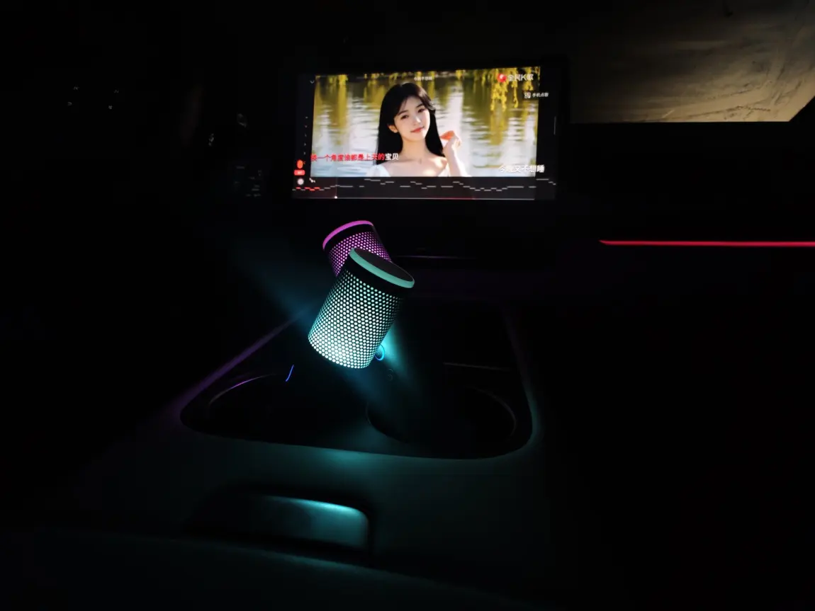 官方的话筒一开,K歌软件一启动,车内氛围灯自动打光,瞬间变身移动演唱会!