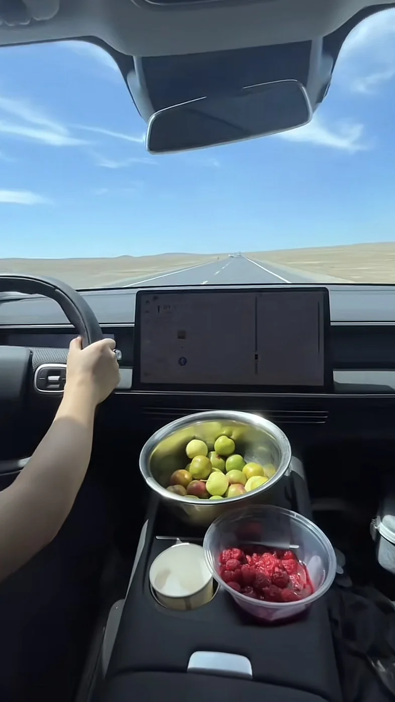 驶入独库公路,一日四季的奇幻在此上演。前一秒还在雪山脚下感受凛冽寒风,下一秒便闯入绿意盎然的草原,成群牛羊低头吃草,毡房点缀其间。小鹏G6的底盘调校格外稳健,过弯时侧倾控制精准,高速NGP辅助驾驶大幅缓解了长途驾驶的疲惫,让我们能安心沉浸在“一日跨四季”的震撼里。