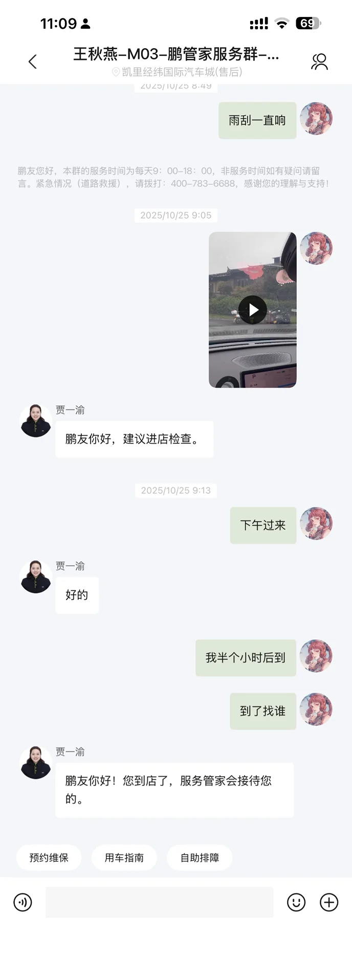 最近下雨开雨刮,一刮就有明显的咯吱异响,不仅闹心,还特别影响开车注意力。赶紧打开小鹏APP,用预诊断服务排查了一下,直接一键预约了到店检修。本来做好了自费的准备——毕竟里程超了免费更换的标准,结果到店后,工作人员特别贴心,考虑到我提车还不到半年,主动帮我申请了免费更换!
