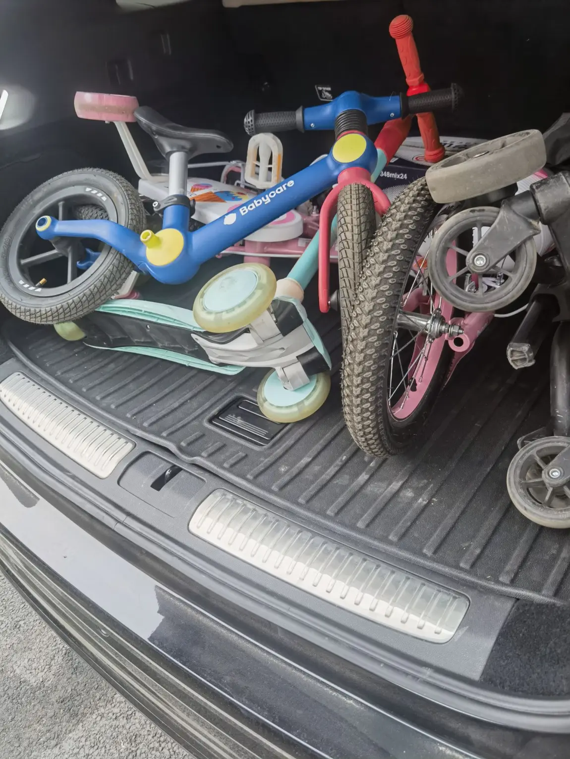 #我的移动储物间# 周末清晨,阳光刚洒进窗,孩子就迫不及待地推着自己当天想骑的车冲向门口。我笑着打开小鹏G9的后备箱,先把折叠车收好放最里层,接着是孩子的自行车、滑板车,平衡车也能再放下,出去玩把自己的车都带上,是孩子最高兴的感觉。看着满满当当的装满自己座驾的后备箱,孩子兴奋地拍手:“爸爸,出发!”关上尾门的那一刻,装载的不仅是玩具车,更是全家人的周末期待。驶向郊野公园的路上,后视镜里映着孩子满足的笑脸——每一次出行的温柔,都从这方从容的空间开始。