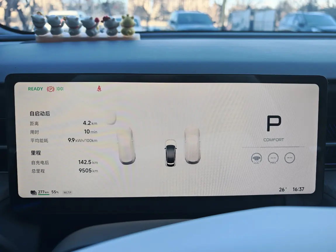 再就是NGP智能辅助驾驶。上了快速路、高速,我基本都交给NGP 。它加减速比人稳,不会忽快忽慢,始终保持经济时速 。跟车距离、车速都控制得很线性,没有多余的能耗浪费 。我对比过,同样一段路,自己开能耗14度左右,NGP开能降到10—11度 ,既省心又省电。