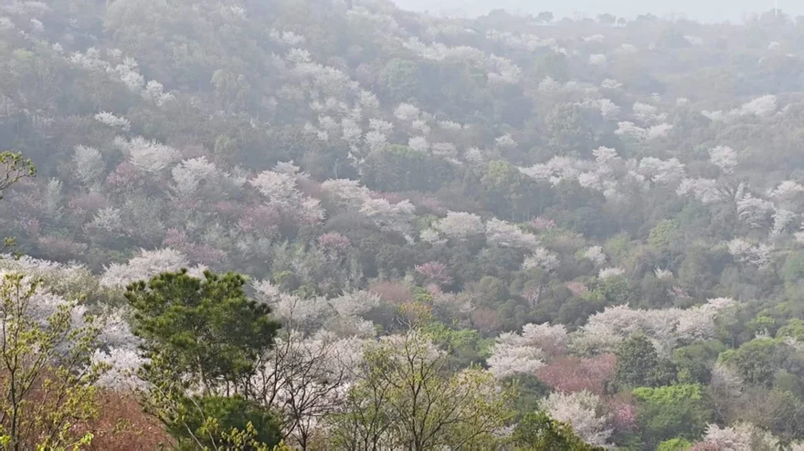 #来一场户外运动# 开着我的小鹏G6,奔赴苏州光福的春日山野,用一场徒步,把运动还给自然。 沿着山间步道前行,漫山樱花在晨雾里盛放,粉白花海顺着山势铺展,满眼都是治愈的绿意与生机。穿过落满花瓣的小径,登顶时风里裹着草木清香,远山在薄雾中若隐若现,每一步都藏着自然的惊喜。 把运动从室内搬到户外,在徒步中感受山野的能量,是鹏友最爱的春日仪式感。和G6一起,与自然同行,与健康相伴。
