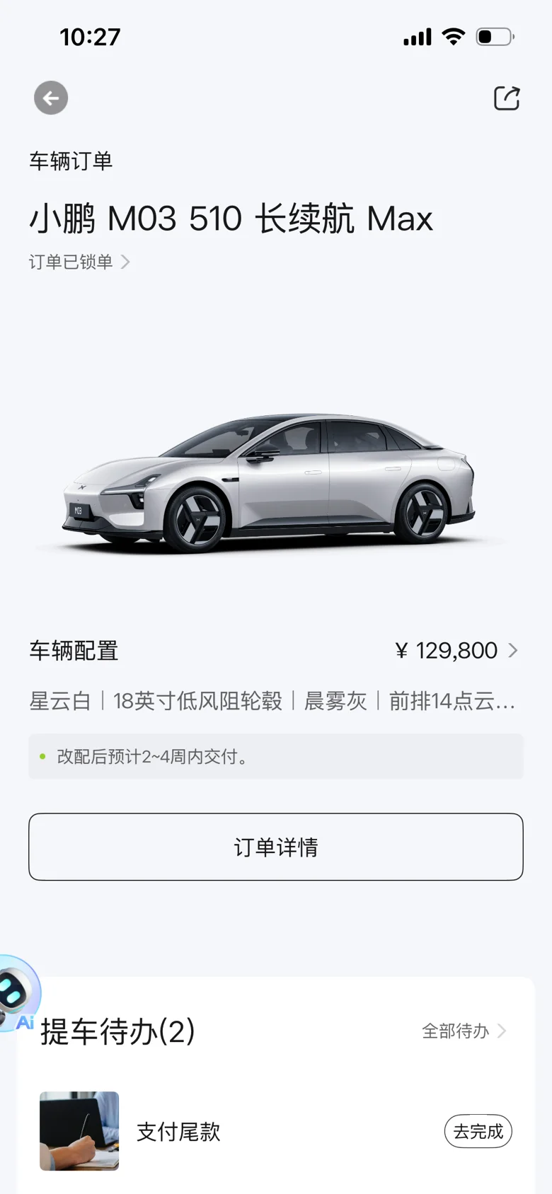 看小鹏很久了,最近终于拿下了,颜值一直在线,实用性也很强,静等提车……