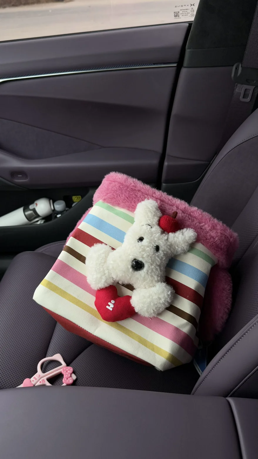 #我的移动储物间# 我的车里藏着一团毛绒绒的粉色温柔。这个收纳筐不大,刚好窝在副驾座椅旁边。摸上去软乎乎的,每次余光扫到那一抹粉,心情都会莫名好起来。里面常年放着一包湿纸巾——擦中控屏、擦杯架上的咖啡渍、擦出风口积的浮灰,随手一抽,干干净净。毛绒的质感能化解急加速的冲动,急弯时它稳当地靠在座椅边,安静不滑动。科技座舱常被贴上“冷感”的标签,但这一筐粉色软萌,是我特意为自己留下的暖意。简单、治愈、刚刚好。