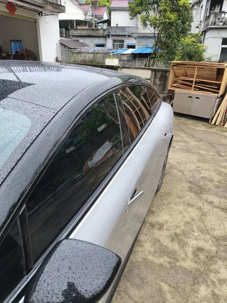 买的全车深色鹏悦太阳膜标准版,几百块的价格还包安装。隐私性也很好。比外面便宜还好用