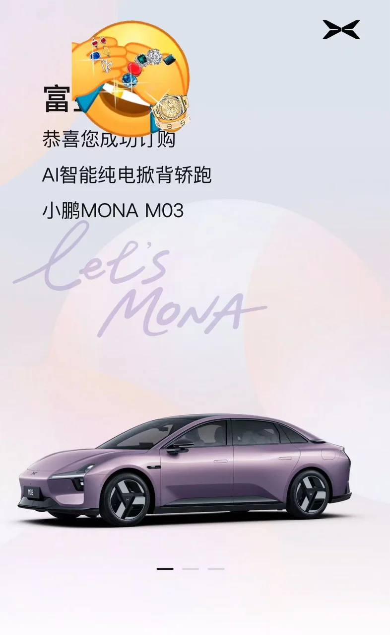 #小鹏MONA M03# 46周岁才拿下人生第一辆车!因为一直不太会开~本来mona是我第一次试驾的车,当时觉得很局促直接pass ,看了很久的车,就是没看mona,因为其他车一时也开不回家,在看了发布会后,狠狠种草。随后去试驾了,智驾让我有信心去开车,试驾后即马上下定。有些缘分躲也躲不掉,一切都是最好的安排!等提车😍