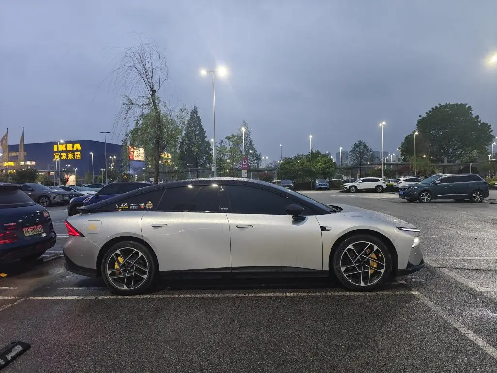 光之剧场:午后斜阳为银灰车身镀上金边,停车场的明暗分割出极简构图,车顶的弧线与地面的直线形成视觉韵律;