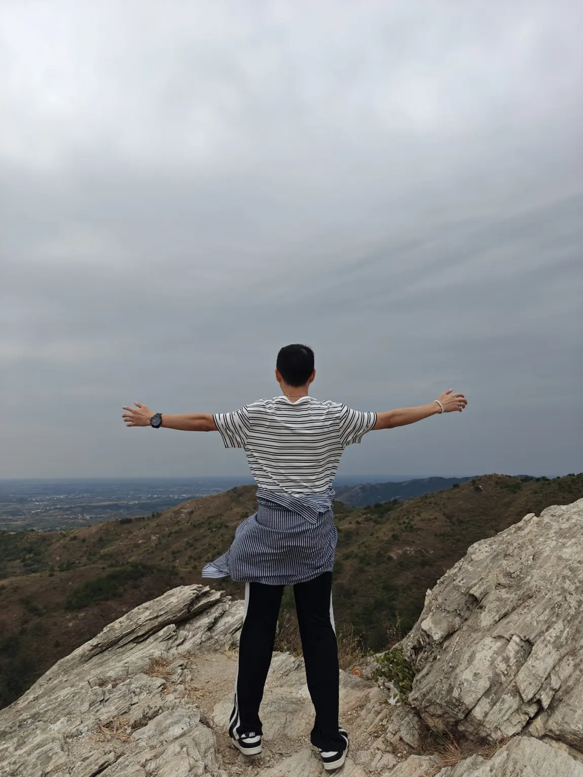 顶峰的释放:站在山脊之上,双臂张开,像拥抱整个天地。远处的湖泊如镜,蜿蜒的公路如丝带,山峦层层叠叠,云层低垂,仿佛伸手可触。