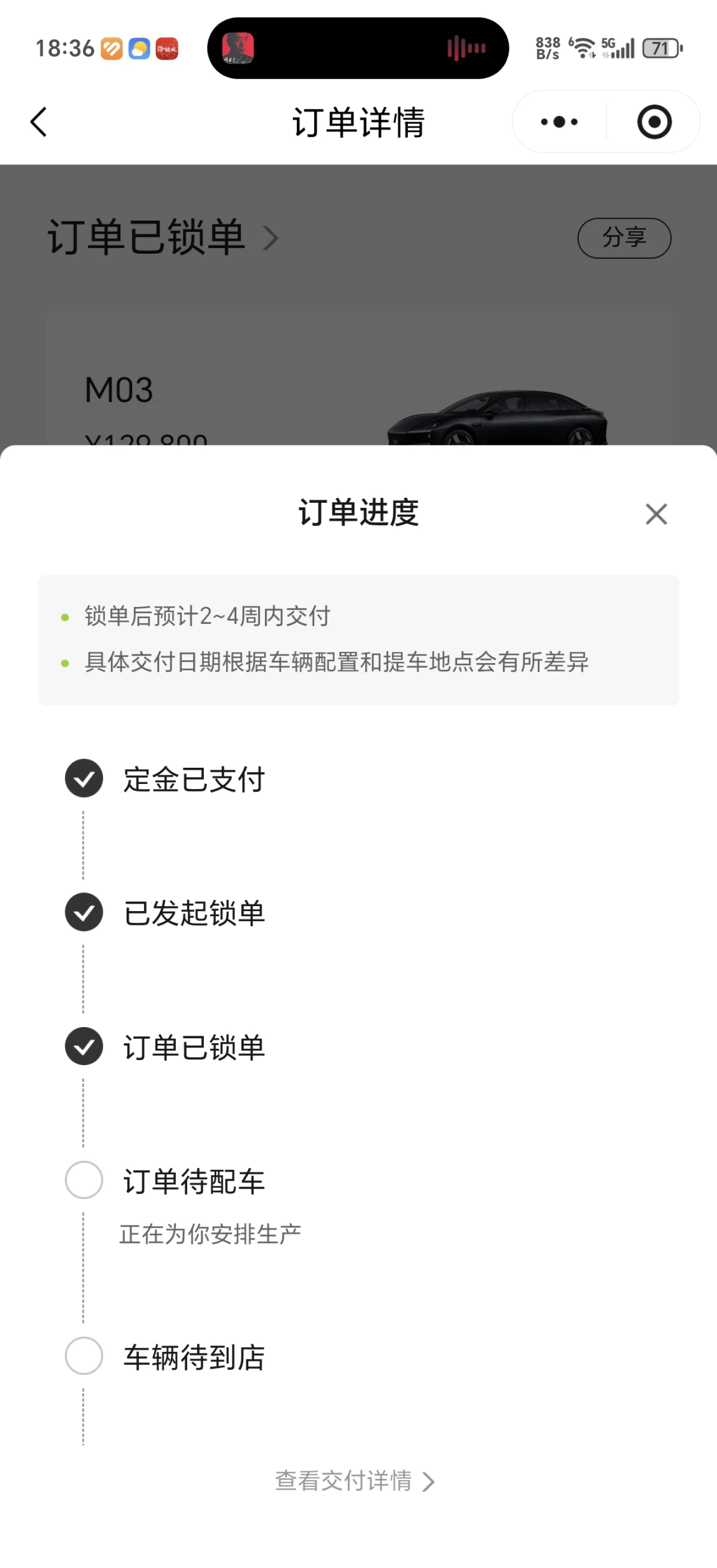考虑很久,m03最终突破重围,最后下定。考虑了紫色、黑色,最后定了黑色,比较百搭,不过时。最看中的是智驾系统,经常跑高速,智驾完全离不开。期待配车。