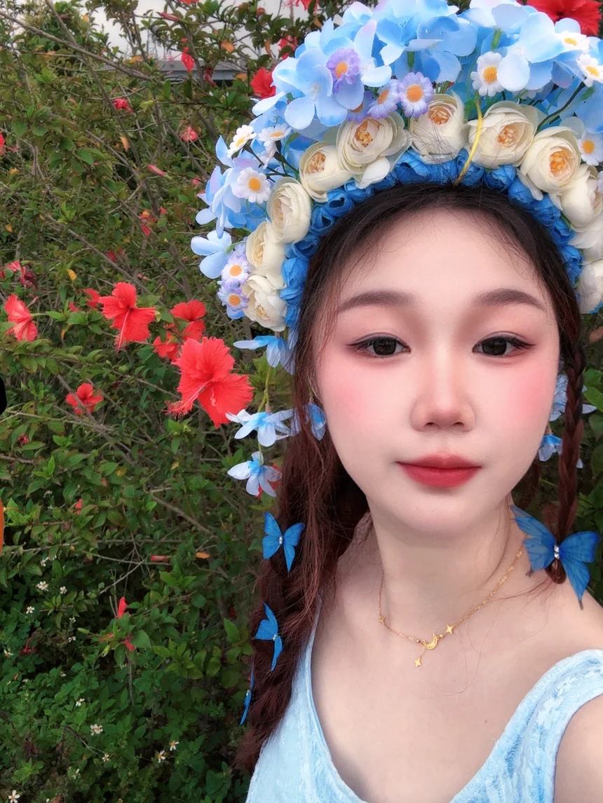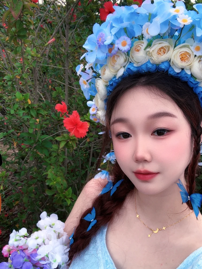 偶尔看着喜欢的花,在蓝色调里悄悄绽放🌹