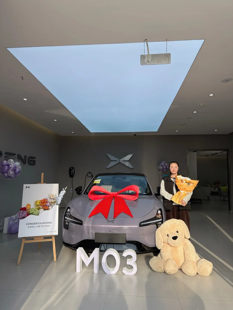 纠结了大半个月,对比了N款小车,最终还是被小鹏M03的颜值和性价比狠狠拿捏,终于在提车日把我的“小车”开回家啦!