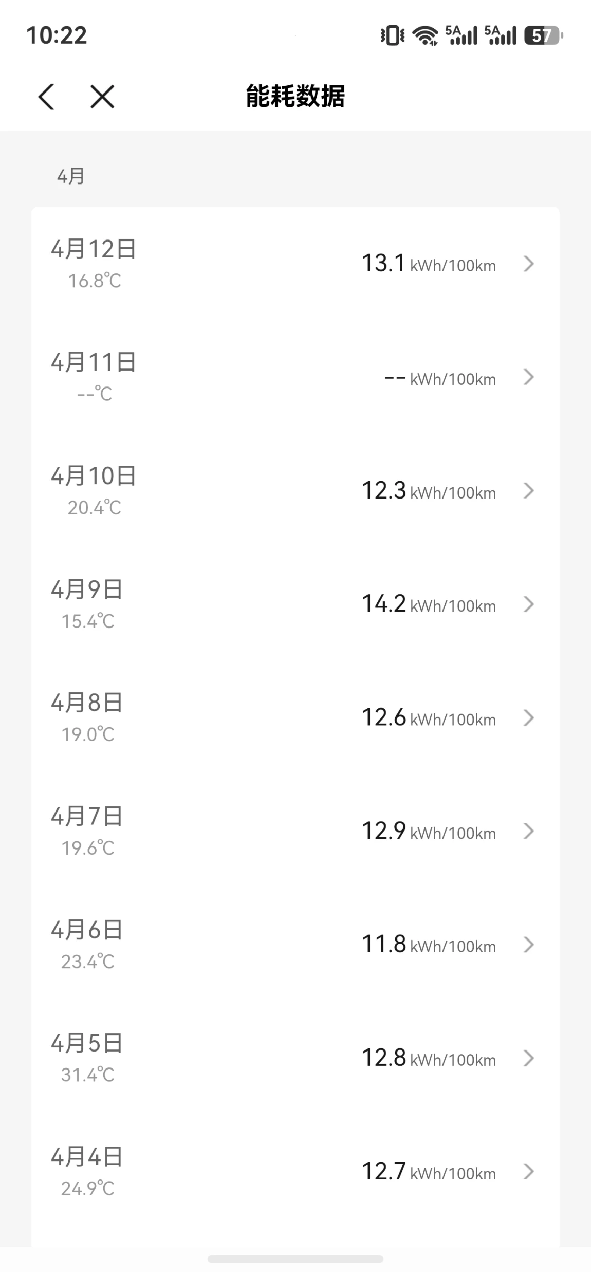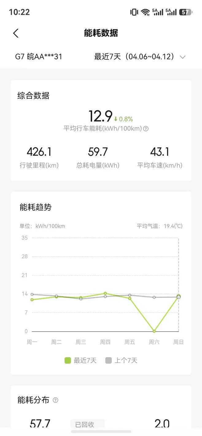 从合肥市区到老家,每周都会走这么一段路程,这段路来回98km,一般1小时左右,平均电耗12.0kWh/100km。市区电耗平均12.9左右,偶尔跑一次高速,这个春天电耗非常友好,基本没差。