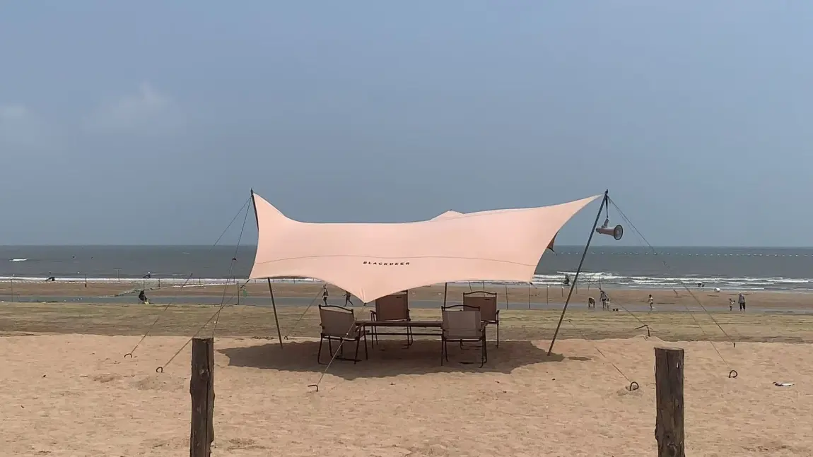 - 玩法:白日踏浪、沙漠打卡、赶海拾贝;傍晚观海上落日;夜晚车载供电,星空电影、沙滩烧烤。