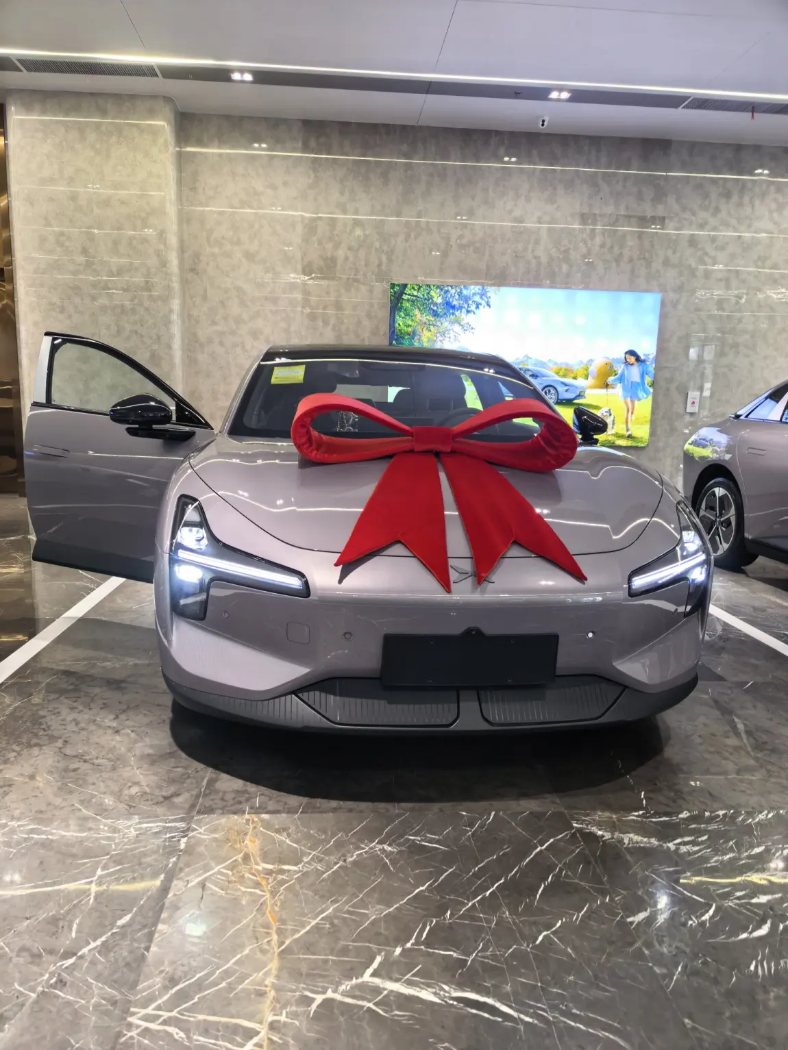 见到实车的那一刻,之前的等待都值了。这紫色,真的太绝了! 它不是那种浮夸的亮紫,在阳光下会泛出细腻的金属光泽,饱和度恰到好处,既优雅又有科技感。销售说这叫"暗夜紫",但我更愿意叫它"闷骚紫"-﹣低调中透着十足的个性。围着车转了好几圈,确认漆面完美,车灯犀利,心里就一个念头:这颜色,选对了!