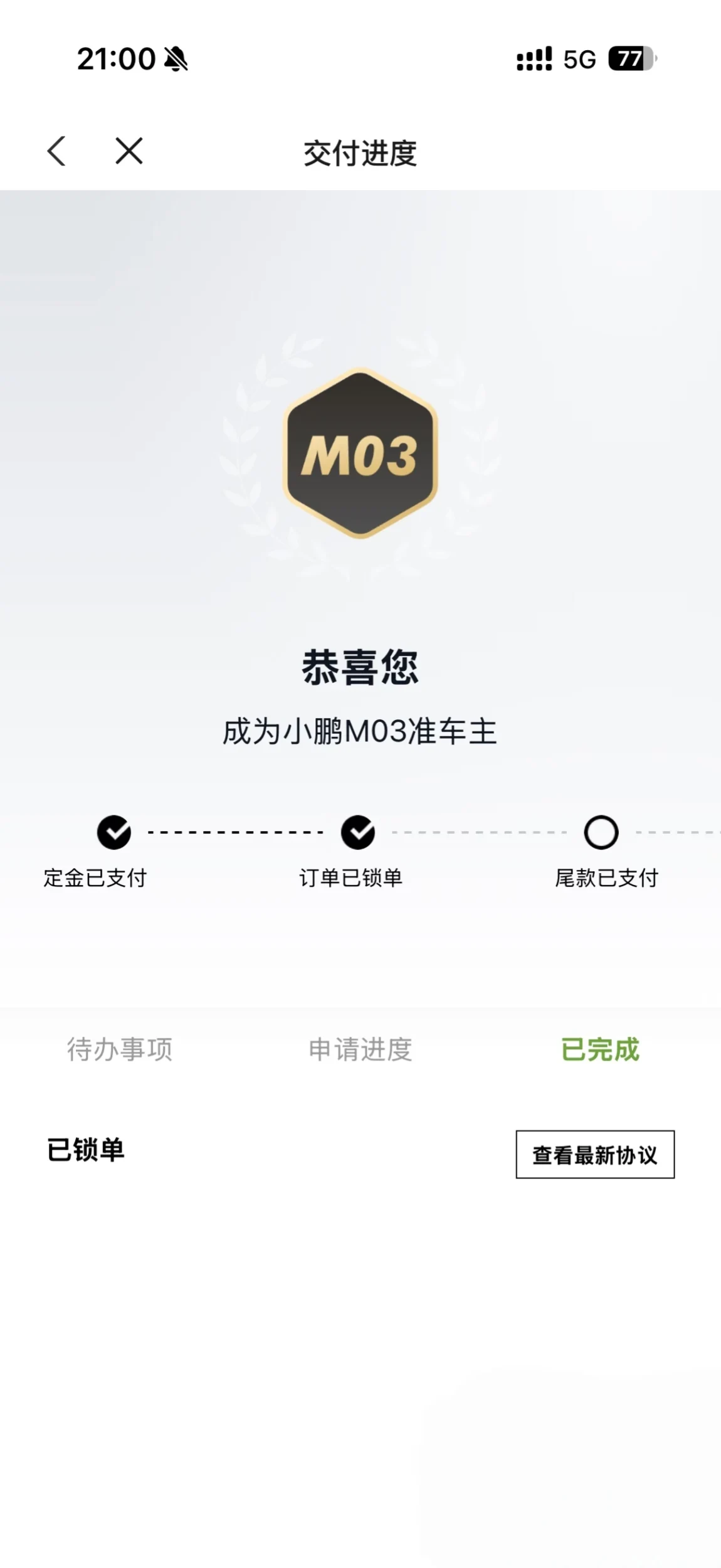 从第一次在门店见到M03的实车,到今天按下确认键,前前后后不过5天。喜欢它的灵动设计,也爱智能驾驶的贴心,终于下定决心把它带回家!