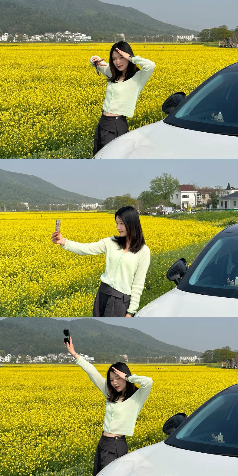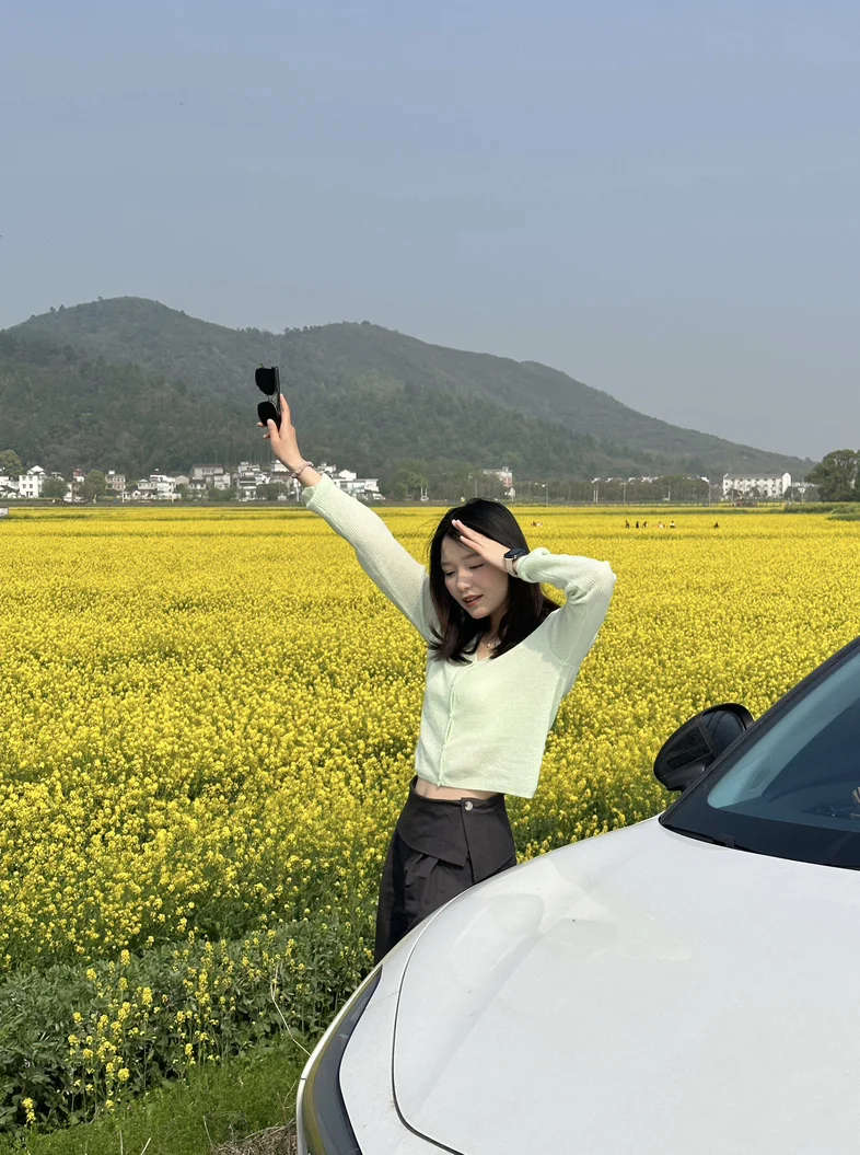 一进响水涧就被眼前的景象震撼到了!层层叠叠的油菜花田顺着山势铺展开,像给连绵的青山裹上了一层金灿灿的绒毯,风一吹,花浪层层翻涌,清甜的花香混着泥土的气息扑面而来,深吸一口,全是春天的味道。白色的车停在花田边,与金黄的花海、黛色的远山相映,随手一拍都是质感满满的车景大片,完全不用滤镜就好看得过分。