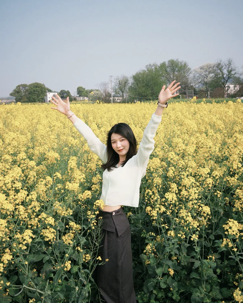 我沿着花田小径慢慢走,随手举起手机记录,每一个角度都藏着惊喜。站在花田中央,抬手拥抱这片金黄,整个人都被春日的温柔包裹着,工作的疲惫、生活的琐碎,在这片花海面前都变得微不足道。阳光透过枝叶洒下来,落在身上暖融融的,耳边是风吹花田的簌簌声,这一刻,才真正懂了“人间值得”的意义。