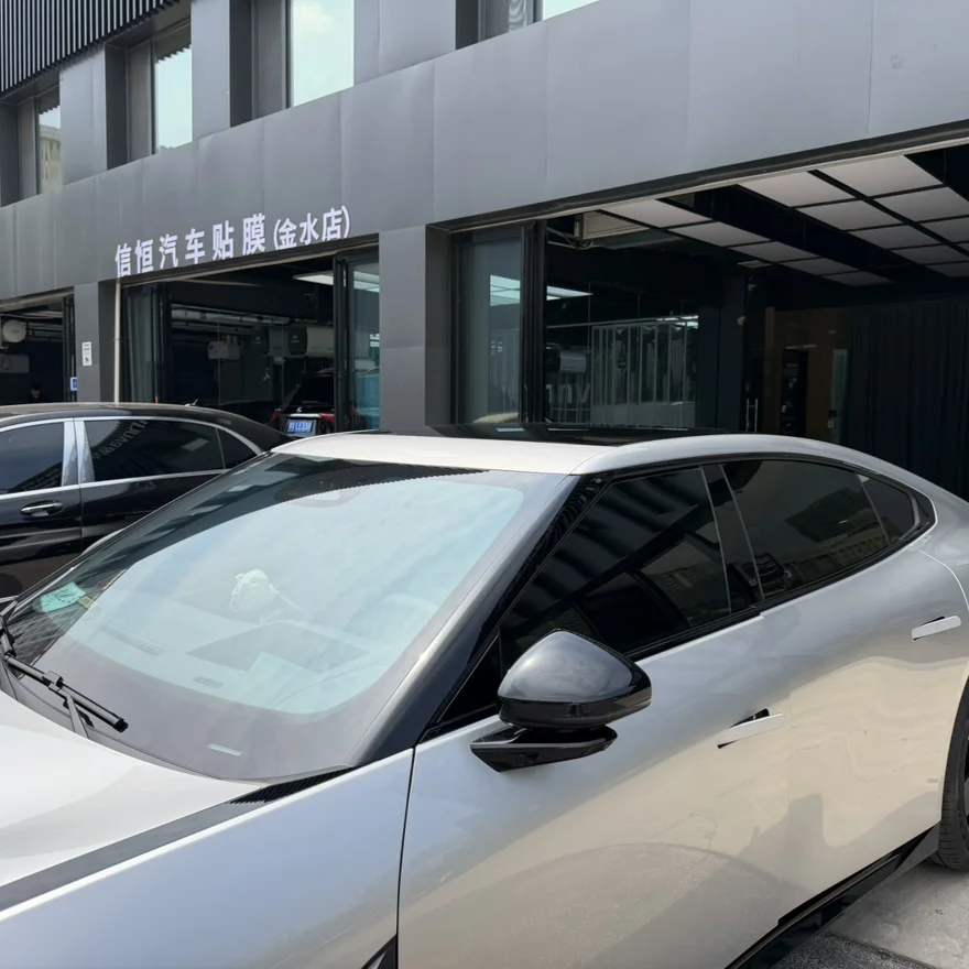#小鹏商城太阳膜真香# 小鹏商城下单了鹏悦的太阳膜,客服给推荐了郑州的晶华的门店施工,施工人员很认真,窗户的贴膜缝隙处理的很到位,基本看不到边缘的缝隙,贴的很仔细,但是前挡风玻璃的太阳膜贴上去以后整体偏蓝色,是太阳膜的问题,目前小鹏商城的客服还没有给出具体解决方案。