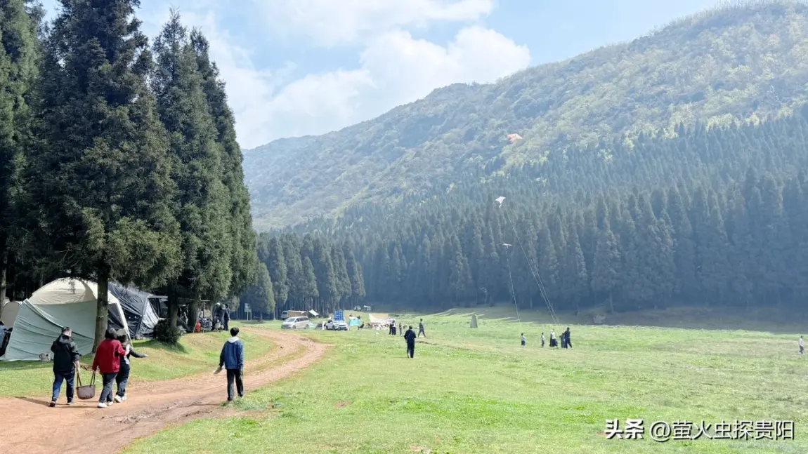 快到营地时,最后几公里是碎石土路,只能缓慢通行。穿过高大茂密的杉树林,眼前突然开阔——大片平整的绿草地铺展在眼前,远处是连绵青山,牛羊悠闲吃草,空气里全是草木清香,完全是未被打扰的原生态模样。