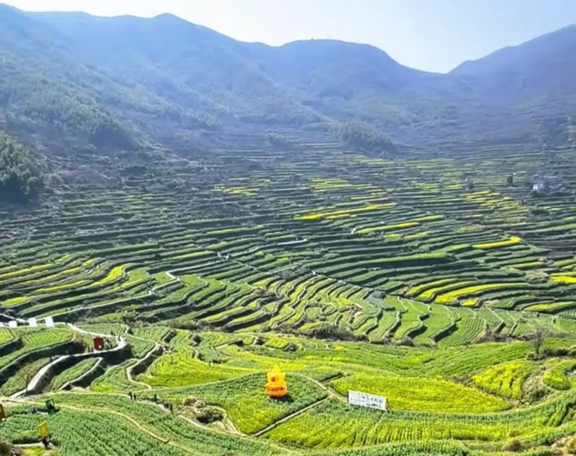 层叠的梯田里,深浅不一的绿顺着山势铺展,和明黄的油菜花交织成春日油画;雨后的山间,云雾缭绕里的竹海泛着湿润的青,G9停在山脚下,车身的水珠和山间的绿意相映,每一眼都是治愈。