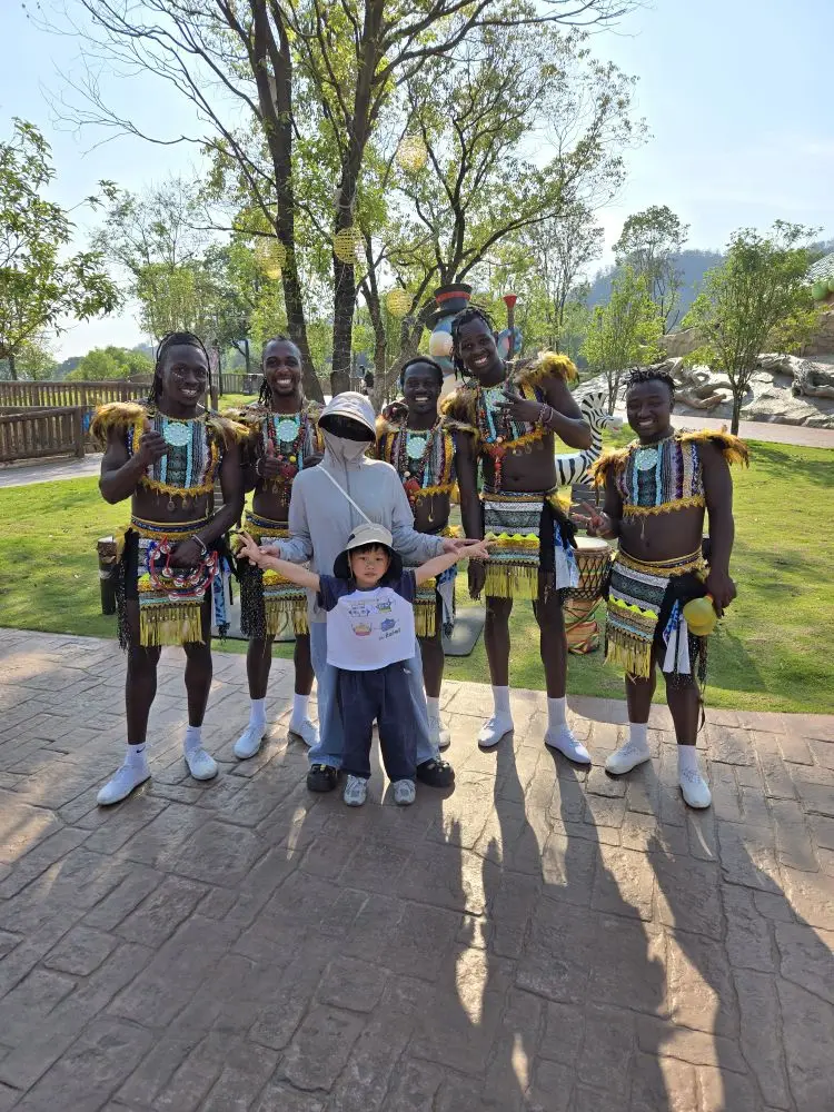 还有惊喜的带娃与热情的非洲友人NPC合影,感受不一样的异域风情,崽崽的笑脸比阳光还耀眼。