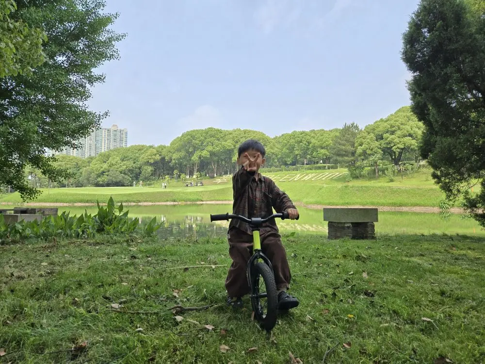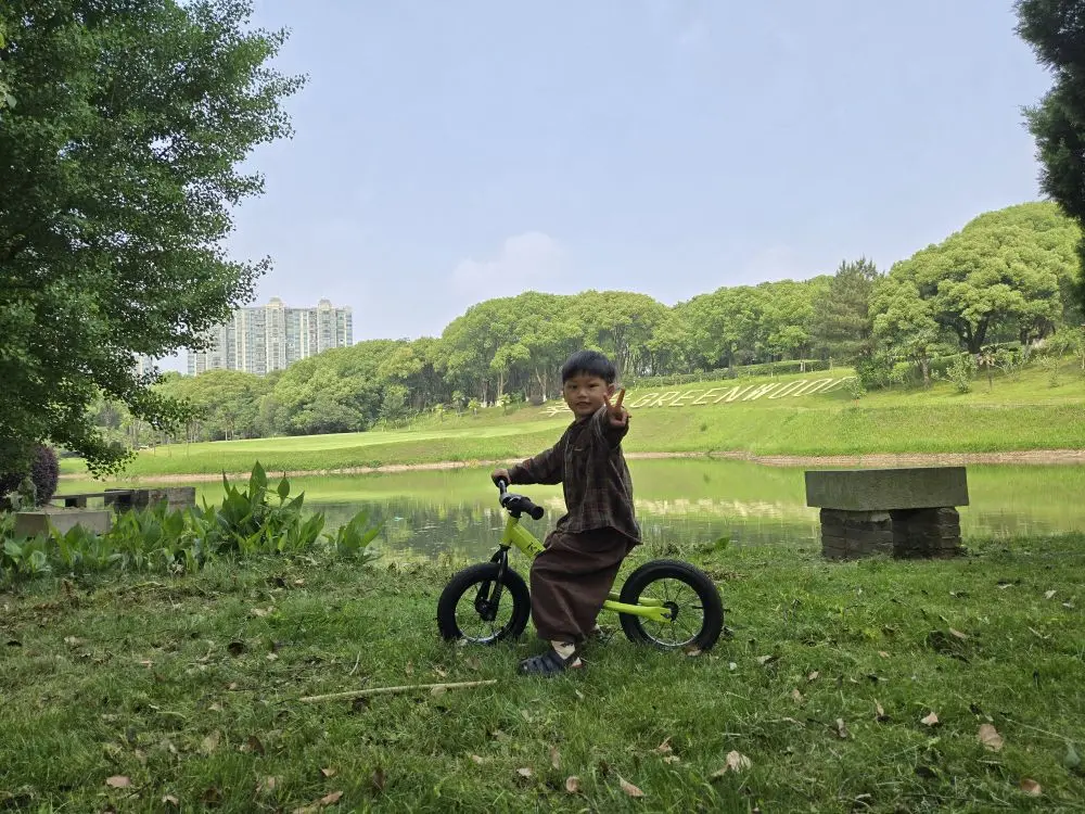 孩子和在草坪上骑车奔跑的时候,散发的是疯狂的生命力,春天的活力衬托在绿色的嫩芽中在。