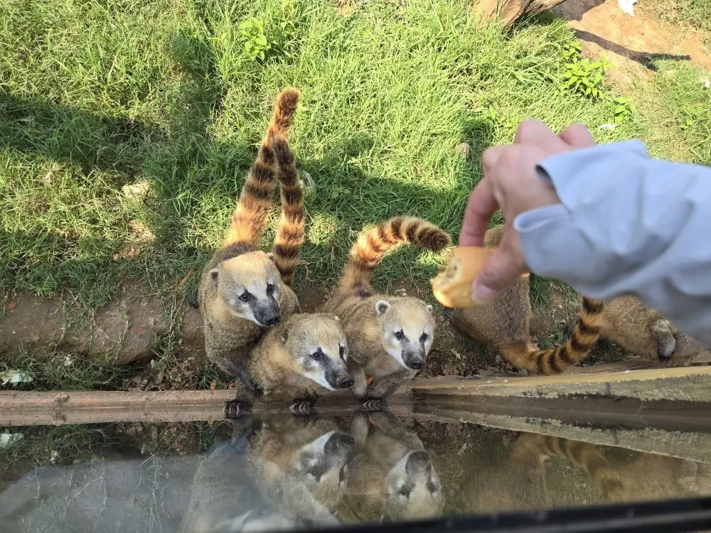 绿意盎然的小路中,圆滚滚的小袋鼠、优雅的黑天鹅,还有没有开屏的孔雀(太遗憾了,没有看到传说中的孔雀开屏)