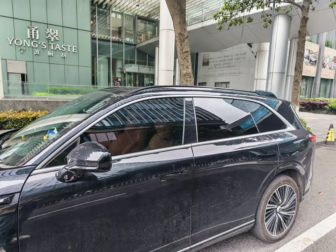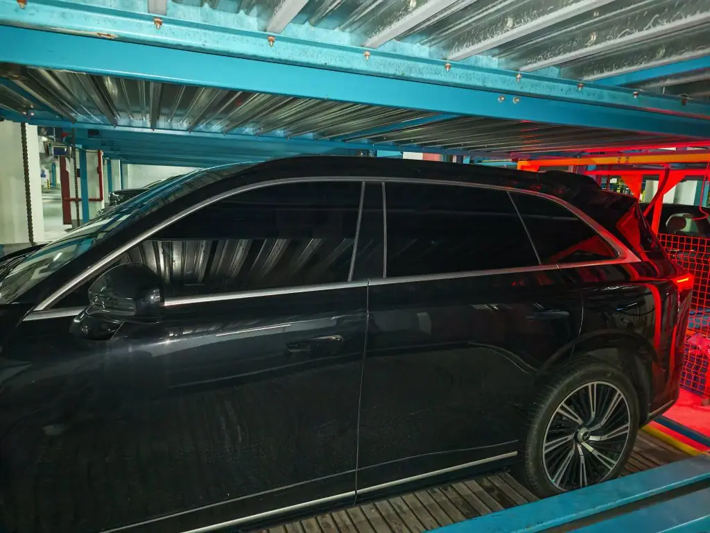 #小鹏商城太阳膜真香# 黑G9贴膜,深色那一款,最便宜的鹏悦陶瓷标准款太阳膜,前面大玻璃不明显,也不隔热,四周窗户感觉很好,有遮阳效果,不是那么晒了,后面本身就有隐私玻璃,加上深色膜基本属于看不见车里的状况,贴玻璃上也不行。看看效果,地下室角度,户外角度。遮阳不隔热,花钱买的,没有积分。总体感觉满意,达到想要的效果了,现在就是前面大玻璃还是会晒,夏天快到了,真的很怕晒,这么一大块玻璃,手臂都晒得疼,但是又不能贴太黑的膜。