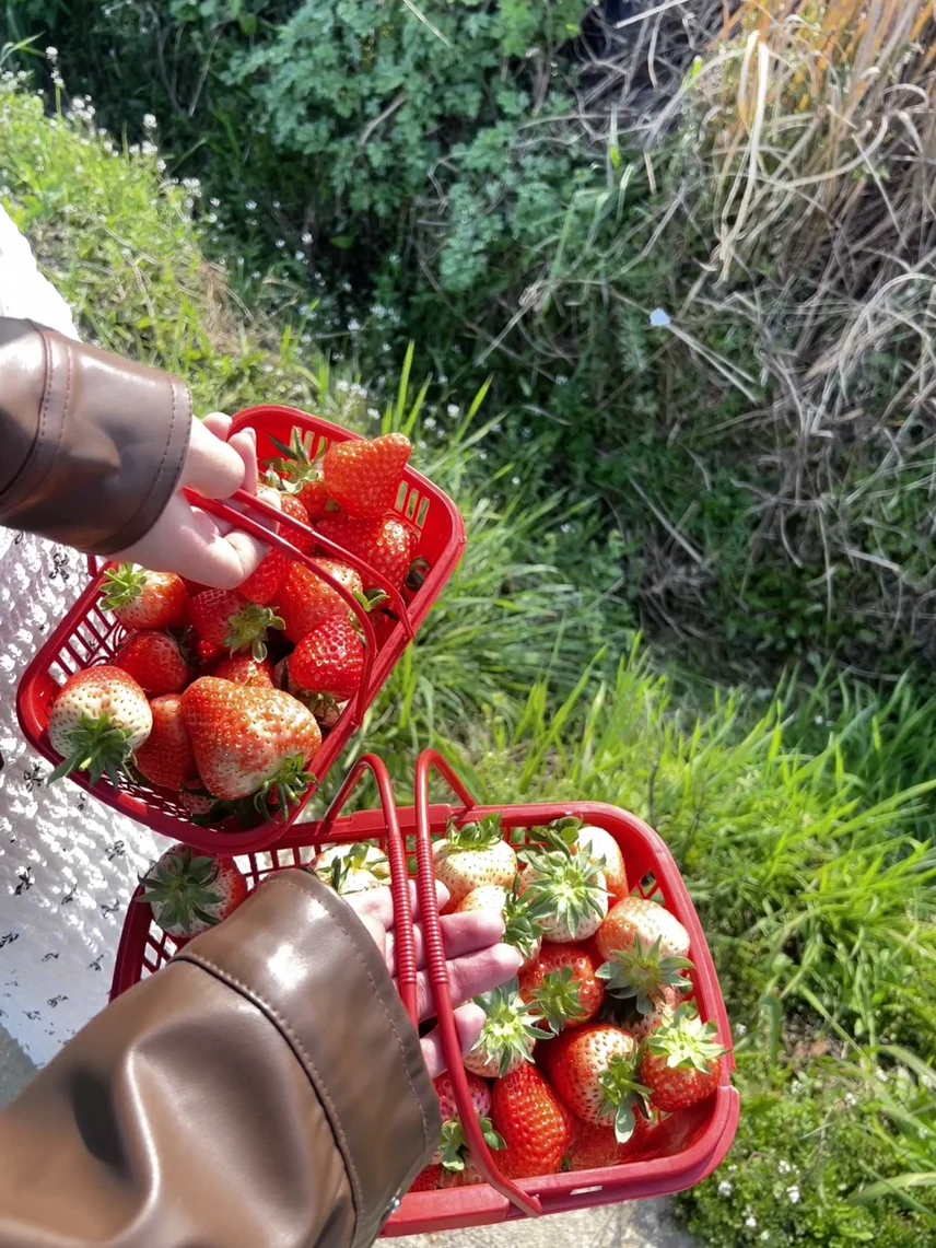 一觉睡到自然醒,心里那股兴奋劲就已经按耐不住了,立马先出发准备食材,为了吃到新鲜的草莓先是跑了一趟草莓园,爽摘一通~,天气明媚,我也明媚。紧接着就是超市大采购,一起准备了大家心爱的小火锅,还有4s店送的水,美滋滋,这里不得不夸夸我的售后门店了,每次服务都炒鸡好!