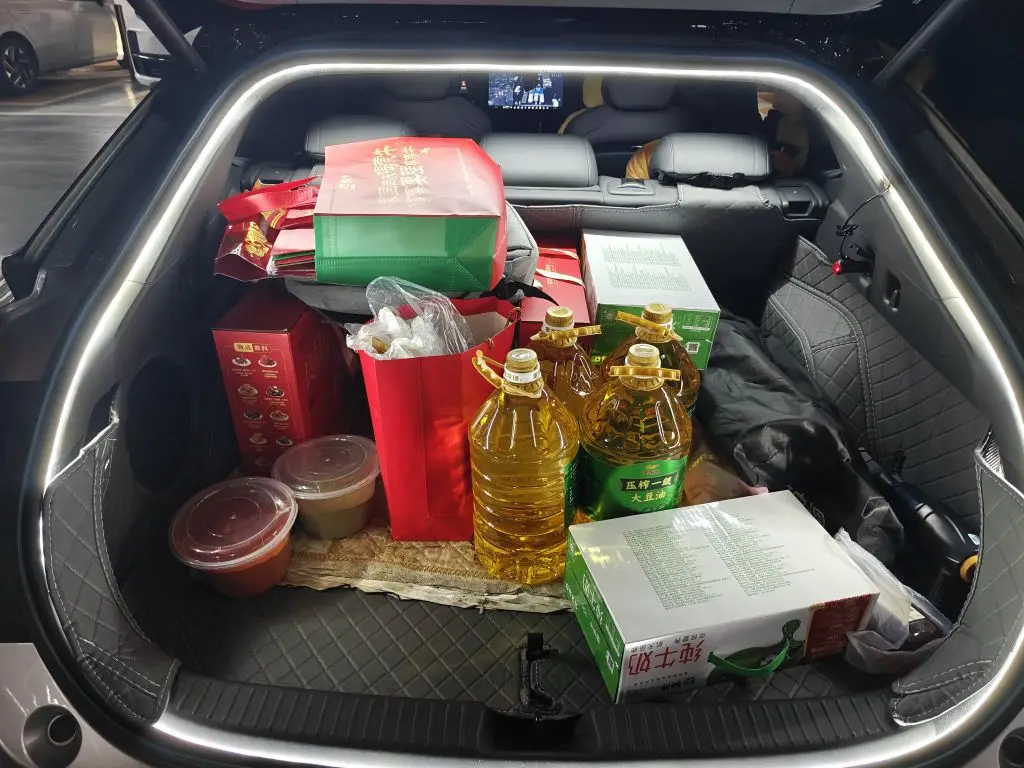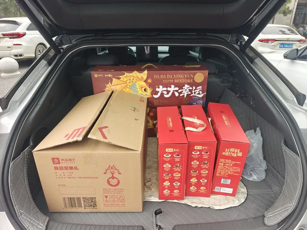 购物狂欢·满载而归:周末的商场战利品(礼盒、新年装饰、生活好物……)往后备箱一放,P7+的规整收纳让物品“各就各位”,连易碎礼品盒都稳稳当当,回家路上再也不用担心“晃动交响曲”。
