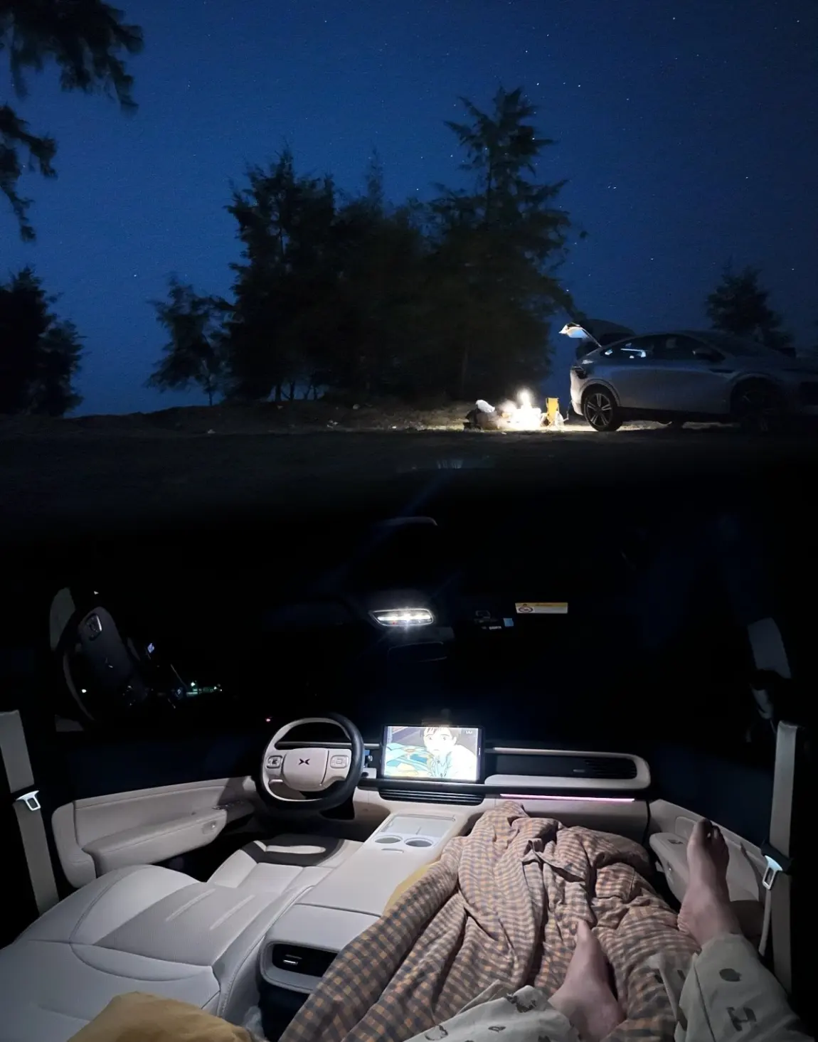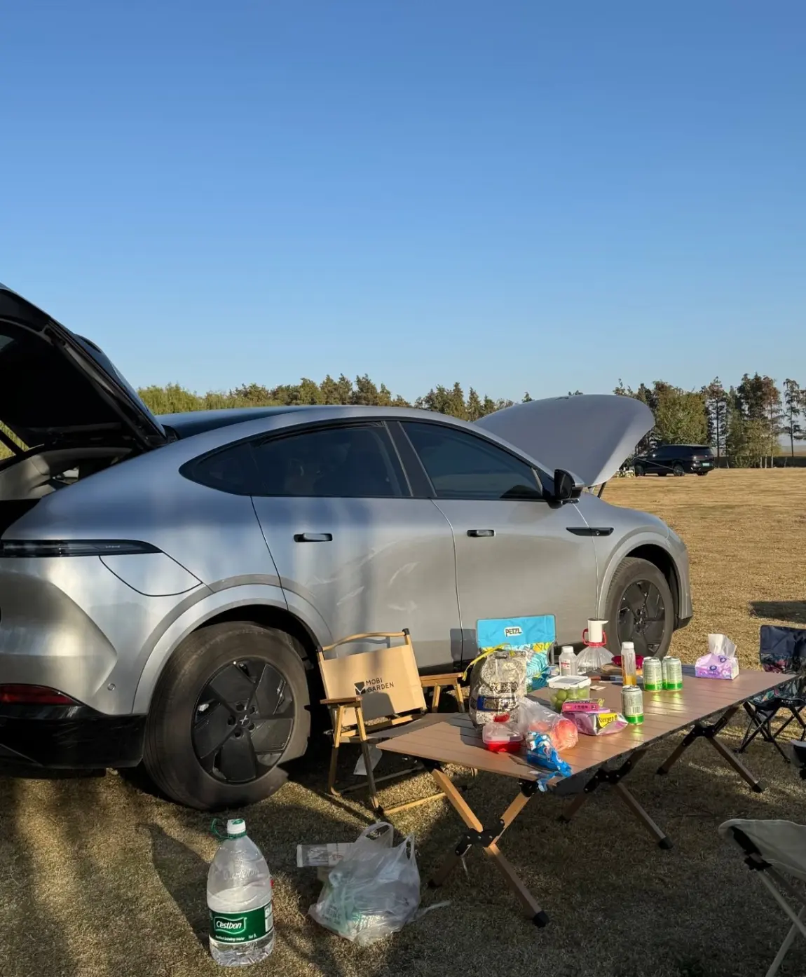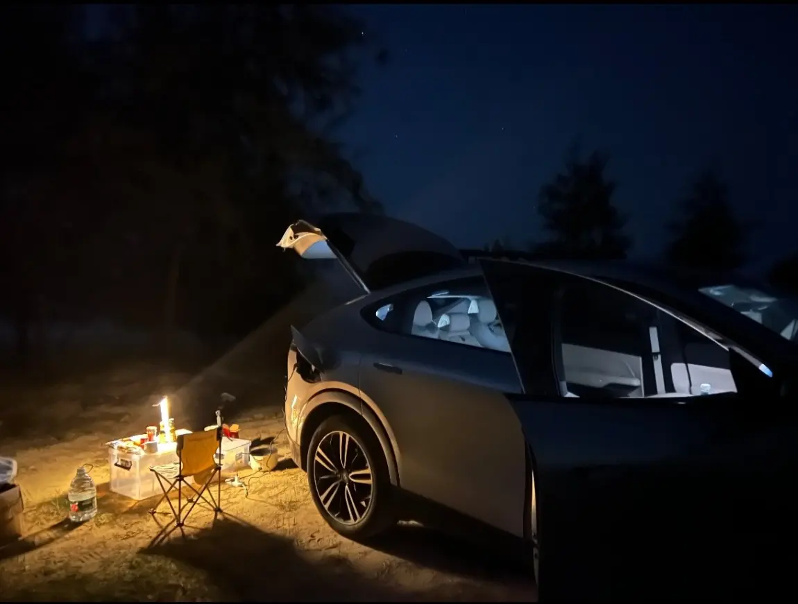 这次露营也试了试小鹏的车载露营小技巧,比如用车辆外放电煮了壶茶,外放电接口很稳定,煮茶、给小灯供电全程没出过问题,朋友都羡慕我“有移动充电站”。我们摆装备时也摸出了门道,G6的后备箱下层能放收纳箱,上面铺野餐垫刚好当临时操作台,露营装备按“常用放上层、备用放下层”摆,拿取特别方便,这算是我踩过坑后总结的露营装备摆放红榜。