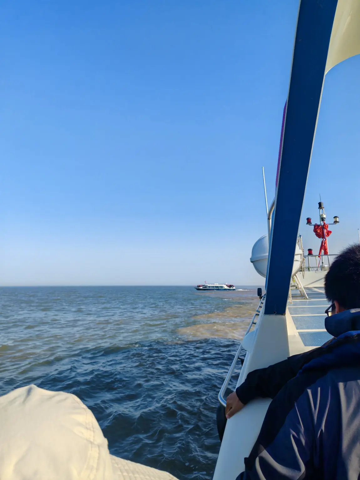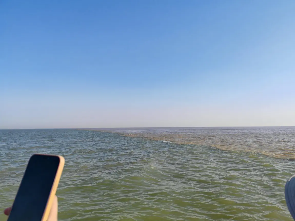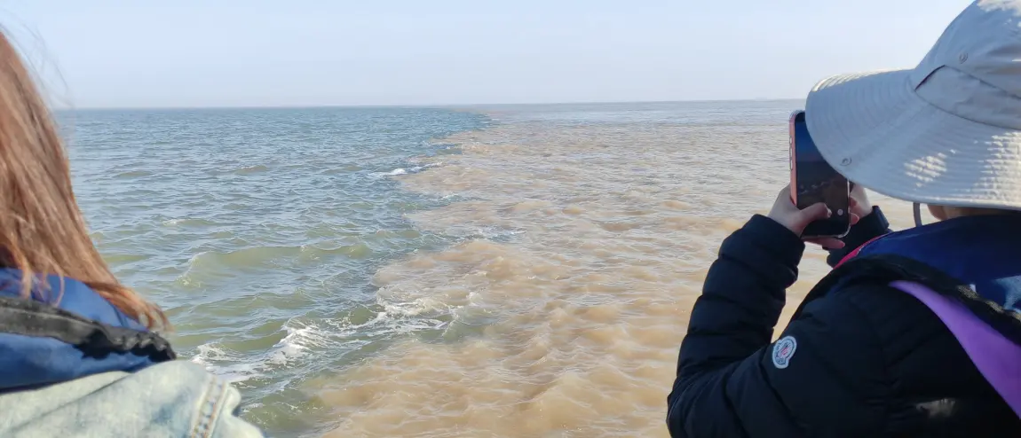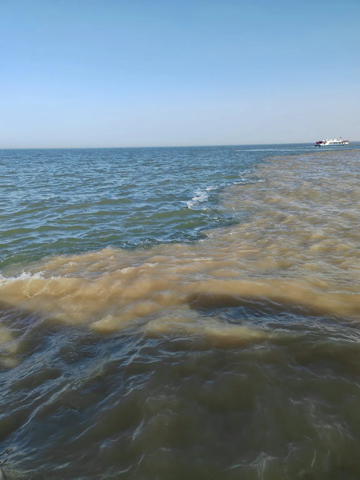 #户外主题色# 今天的户外主题色是浑浊的黄色和湛蓝的蓝色假期开着小鹏来到了东营市黄河入海口。真的是黄河之水,带着黄土高原的泥沙,变成了货真价实的黄泥汤,流向了湛蓝的渤海海域,从景区码头乘坐着快艇一个小时才来到了真正的河海交汇之处!颜色很震撼,很清晰,大自然造就的现象真的很神奇,来到甲板上,感受着海风,用自己的眼睛真实看到的那一刻,无比开心喜悦兴奋,再搭配着飘扬的五星红旗,就觉得这一趟旅程值了,这船票也值了!
