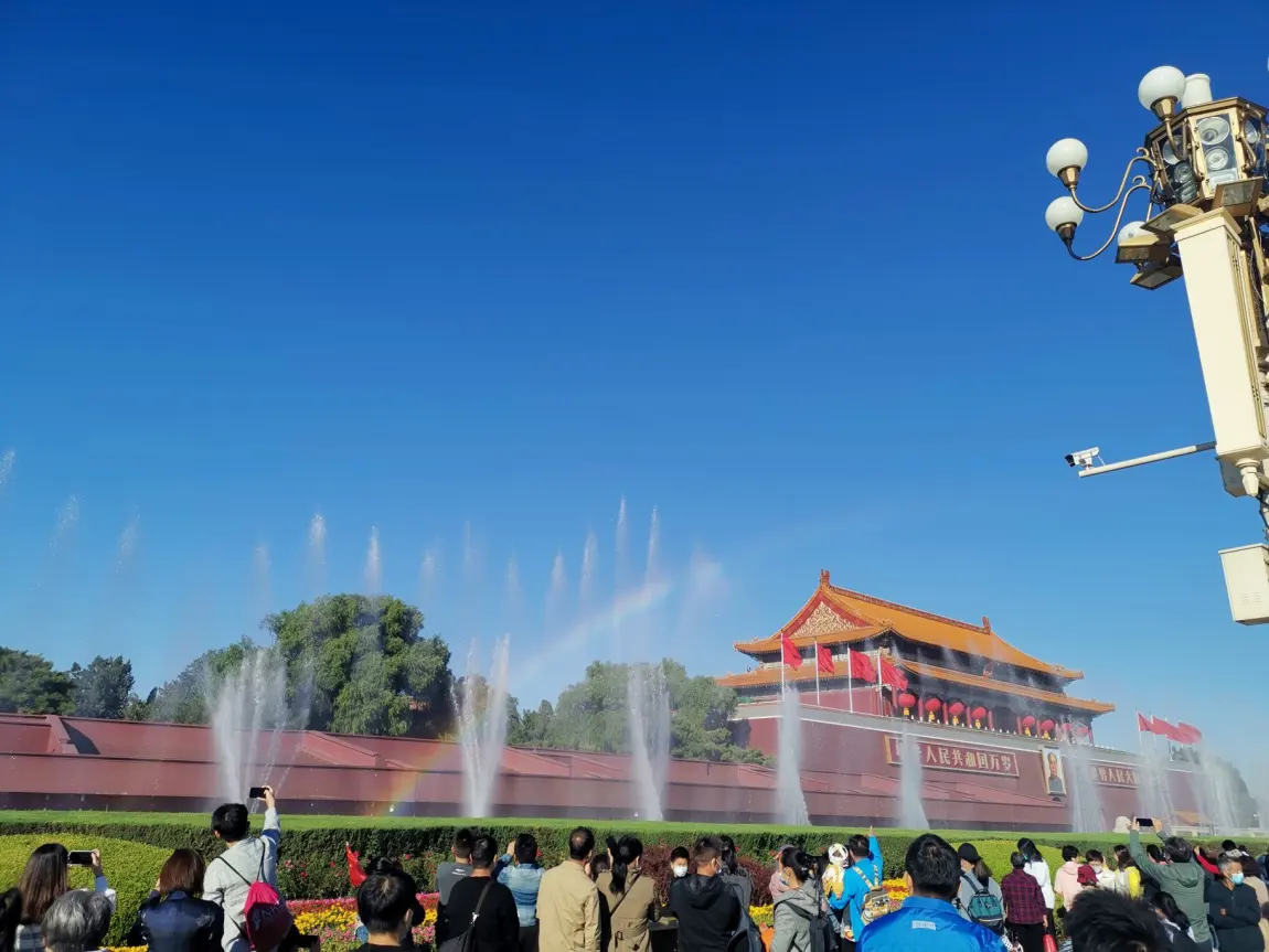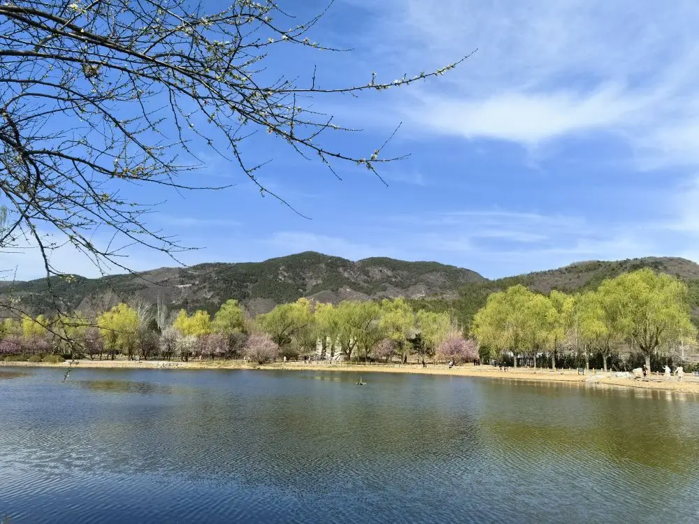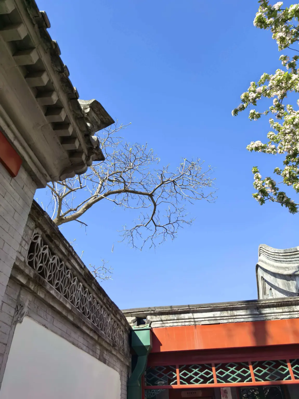 从春日公园的澄澈晴空,到山间旷野的辽阔蓝天;从故宫红墙下的万里无云,到承德红墙前的云卷云舒;从枝头繁花衬着的透亮蓝,到胡同瓦檐下的温柔蓝…