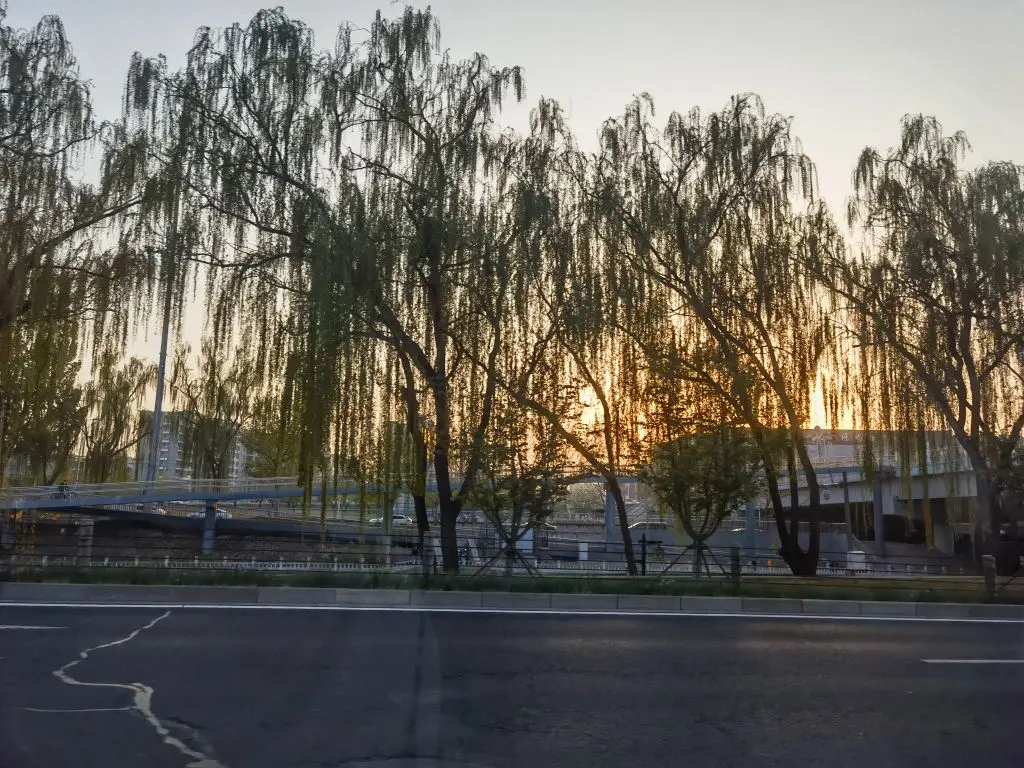 有垂柳依依,有晚霞相伴。