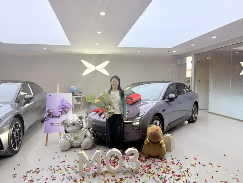 在与极狐s5纠结了好几天还是选择了小鹏终于和我的小紫同框了该说不说这个车第一眼爱,最后还是很爱太吃小鹏的颜值了从25款等到26款上市感受最深的就是小鹏销售人员和交付人员的专业和服务~ 态度也特别好所以提车的过程特别愉快和舒适!终于告别风里去雨里来的上班路今后多了一个好朋友,小鹏m03 与我共进退叭