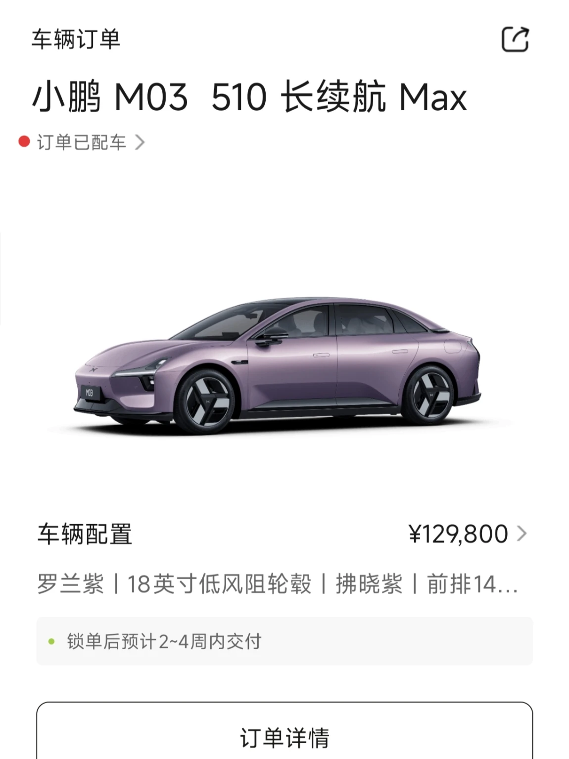 26款MONA M03终于配车啦!3号中午锁单,好喜欢罗兰紫,实车真的很漂亮~ 锁单后每天刷好多遍配车进度,漫长的等待,不到两周,终于轮到我啦,坐等提车[仙女R]准备看车内好物了,欢迎鹏友们推荐[太阳R]