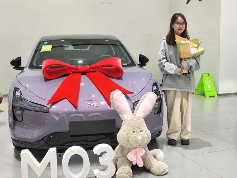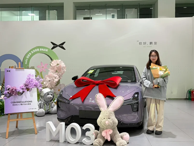 #我的提车作业# 终于提车啦!!!!!4.2号首发就下单了,但周内实在是太忙了,周末提的车,不过!!!销售人员和交付人员都很棒,还准备了小花花拍照,紫色也是超级漂亮的😍😍😍提车当天在下雨,刚好开着小车回家不淋雨,第一天就跑了200km,智驾也比之前的聪明太多啦!小p超级可爱☺️喜提新车!开启快乐人生🎉刚开始其实还是有点忐忑,不过跑高速的时候小p表现的很棒🤒🤒线上选的车牌号也还是很符合自己的预期!一切都很顺利诶!