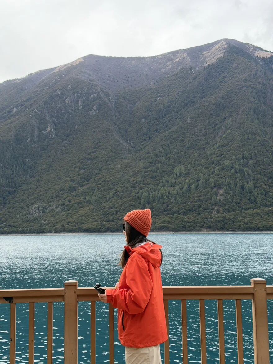 沿着湖边栈道慢慢走,风里裹着湖水的清冽和松枝的清香,岸边的经幡被风吹得猎猎作响,每一下都像在和这片湖轻声对话。偶尔有水鸟掠过水面,漾开一圈圈涟漪,连脚步都不自觉放轻了。
