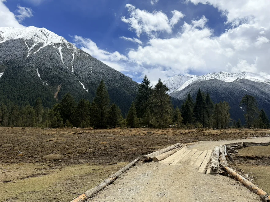三公里的徒步路不算轻松,越往深处走,海拔带来的轻微喘意越明显。大概是2个小时来回🔁徒步清晰可以看见远处冰川隐约的轮廓。走出森林,新措湖的全貌撞进眼里的瞬间,所有疲惫都被风吹散了。