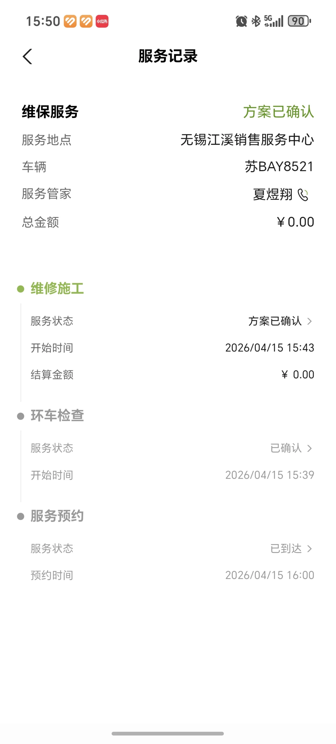 提车到现在也两个月时间,我的小鹏友也是来到他的第一个保养时候,手机app刚预约,4s售后服务就打来的电话,问了一些问题,很细心周到!